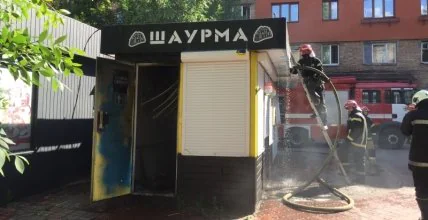 В Киеве спасатели потушили пожар в киоске шаурмы