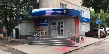В городе Краматорске, который сегодня является административным центром Донецкой области, облили красной краской и разрисовали партийный офис "Оппозиционной платформы - За жизнь". Фото с места инцидента опубликовал в Facebook журналист Денис Казанский.