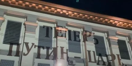 Ее участники с помощью технических средств спроектировали на фасаде здания надписи красным и черным цветом на русском языке: "Как Путин сфальсифицировал голосование", "Вброс дополнительных бюллетеней после вскрытия избирательных урн", "Подтасовка результатов во время перерывов для дезинфекции", "У псов Путина (ЧВК "Вагнер") развязались руки", "В Россию пришла гибридная монархия Путина", "Теперь Путин - царь, россияне - рабы".