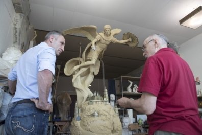 По его словам, на днях создали 3D-модель скульптуры из специального "пластилина" и начали ее сканировать. Далее скульптуру будут частями выливать из бронзы и соединять их. А вот основа композиции уже готова.
