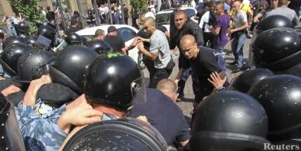 После этого более представители СМИ устроили акцию у здания главного управления МВД Украины. Они требовали наказания для нападающих.