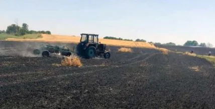 Возгорание возникло на поле, через которое проходят высоковольтные линии электропередач.