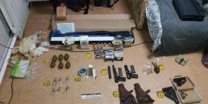 Отмечается, что во время обысков в доме у задержанного было найдено оружие и взрывчатка, а именно: