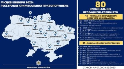 Всего же с 5 сентября территориальные органы Национальной полиции зарегистрировали 712 сообщений, связанных с избирательным процессом.