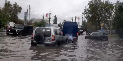 Из-за обильных осадков улицы превратились в реки. Ливневки не справлялись с огромным количеством воды и транспорт плыл по дорогам.