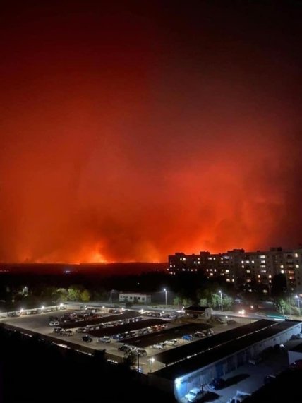 По данным очевидцев, огонь пожаров в Луганской области почти добрался до городской черты Северодонецка.