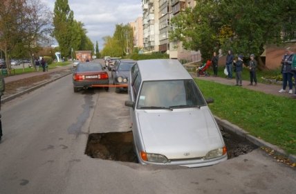 Городской голова Игорь Сапожко пояснил журналистам, что машина частично ушла под землю из-за повреждения центрального самотечного коллектора в районе промзоны. Вызвано оно было обильным дождем. В КП "Броварытепловодоэнергия" и вовсе признаются, что провалов по городу больше, и не исключают, что связано это с началом отопительного сезона. Ведь тепловые сети вполне могли не выдержать нагрузку и дали течь в первые же дни.