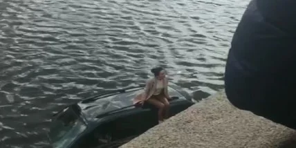 Девушка, которая управляла автомобилем, рухнувшем в реку с наберженой в Харькове смогла выбраться из машины сама. Приезда спасателей и скорой молодая особа дожидалась, сидя на крыше машины, наполовину погруженной в воду.