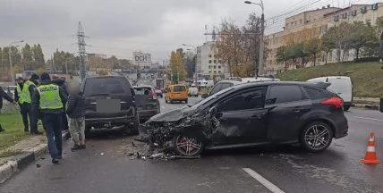 По предварительным данным, неустановленный водитель автомобиля "Ford Focus" допустил наезд на автомобиль "Hyundai", что в дальнейшем привело к столкновению с автомобилями "Toyota" и "Honda".