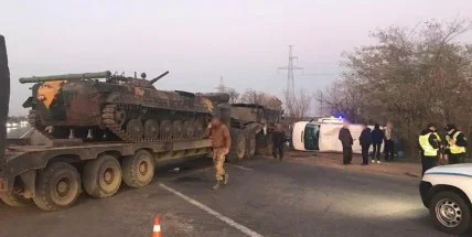 В Одесской области случилось ДТП с участием военного тягача, перевозившего БМП.