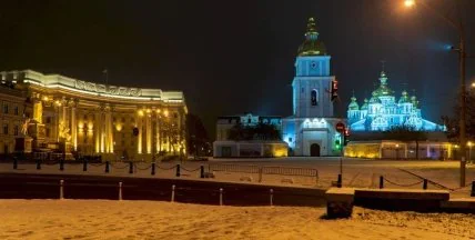 Пользователи социальных сетей поделились фото первого снега в ночном Киеве.