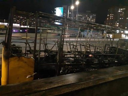 Вечером 21 ноября неподалеку станции метро Академгородок случился пожар в маршрутке. Автобус полностью сгорел.