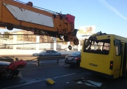 В Одессе автокран стрелой «вонзился» в маршрутку с пассажирами, есть пострадавшие: фото и видео