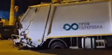 В Шевченковском районе столицы, под землю ушел мусоровоз, где ранее было положено новое дорожное полотно.
