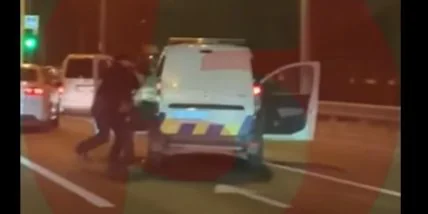 На кадрах видно, как полицейские, не ожидавшие, что водитель остановленного ими авто на Одесской площади вдруг ударит по газам, быстро бросились в служебную машину. Но по дороге к своим сидениям столкнулись.
