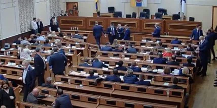 Серьезная драка в Одесском облсовете, который никак не мог начать первую сессию из-за блокирования трибуны представителями ОПЗЖ, Партии Шария и "За майбутнє" все же завершилась избранием нового главы облсовета.