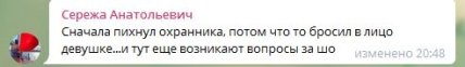 Однако в комментариях к записи пользователи отметили, что перед этим парень толкнул охранника, а затем что-то бросил в лицо другой охраннице.