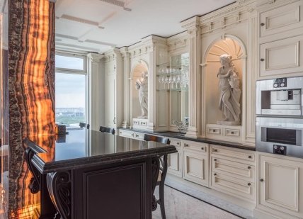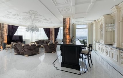 Квартира в ЖК "Diamond Hill" с панорамными видами на Днепр и Киево-Печерскую лавру, поражает своей помпезностью в стиле экс-генпрокурора Виктора Пшонки.