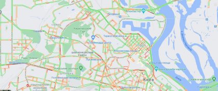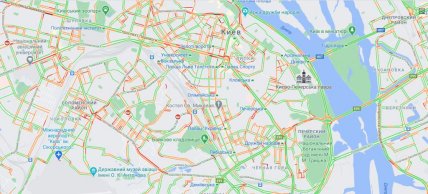 По данным на Google Maps, наибольшее количество пробок наблюдается на проспекте Победы, улице Юрия Илиенка, бульваре Тараса Шевченко, улицах Елены Телиги и Набережной, проспектах Степана Бандеры, Валерия Лобановского, на улицах Жилянской, Николая Голего, Генерала Тупикова и на Индустриальном переулке.