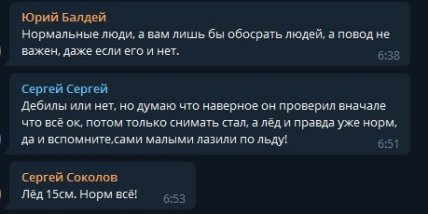 "Для тупых пишу, 15 см лед выдерживает автомобиль весом 2 тонны, если что", "Сколько негодования и зачем, кому оно надо! Может это и неправильно, но родители сами решают и несут ответственность. И молодцы, на улице, прогулка активная, а не диван!!!", А откуда столько негодования, на улице больше недели стабильный минус, лёд больше 10 см", - отмечают комментаторы.