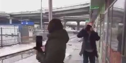 После чего, судя по кадрам из видео ее атаковал какой-то мужчина. Но осуществить преступный замысел до конца не смог, так как поскользнулся и упал на лед.