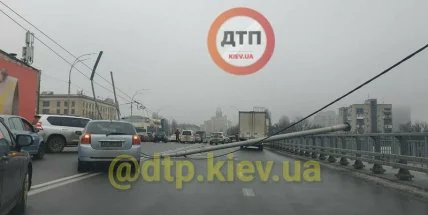 Шулявский мост перекрыли рухнувшие на него новые столбы освещения.