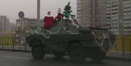 В сети заметили, как Деды Морозы катаются по Киеву на БРДМ.