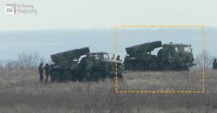 InformNapalm подчеркивает, что впервые эти РСЗО были замечены еще в феврале 2016 года в Донецкой области неподалеку от того места, где их заметили БПЛА ОБСЕ в декабре этого года.