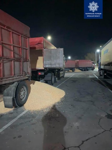 Во время разговора водители отказались предъявлять какие-либо документы и на законное требование вернуться назад для взвешивания не реагировали. В это время к грузовым автомобилям подъехали несколько автомобилей с которых выбежали неизвестные лица - около 25 мужчин и открыли борта на прицепах. В результате чего зерно высыпалось на дорогу. После этого неустановленные лица быстро скрылись.
