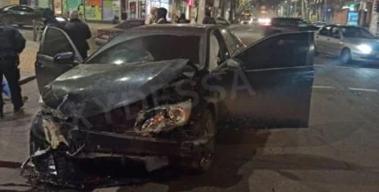 На кадрах видно, как новая Тойота летела по встречной с Бунина и влетела в Тойоту на Ришельевской. Отметим, что второй автомобиль проезжал на зелёный свет.