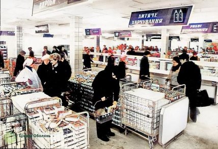 Универсам №9 в час пик. Фото ЦГКФФА Украины им. Г. С. Пшеничного, 1980-е годы.
