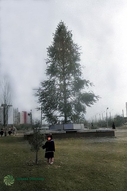 Елка у дома быта "Оболонь", январь, 1992 года. Фото В. Дядюшенко.