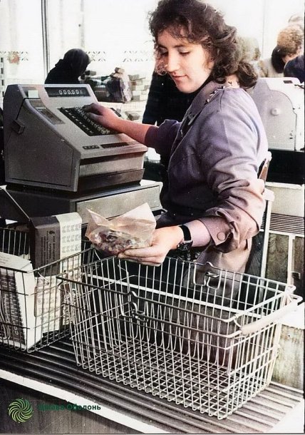 На кассе универсама №3. Фото ЦГКФФА Украины им. Г. С. Пшеничного, 1980-е годы.