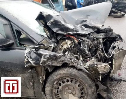 Два человека госпитализировали с серьезными повреждениями после аварии.