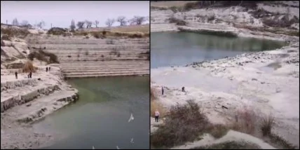 На кадрах видеозаписи можно заметить насколько сильно иссякло озеро и в каком состоянии оно находится.