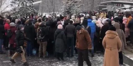 В Харькове на Крещение местные жители устроили огромные очереди в Саржином Яру