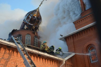 Во время пожара люди выносили из церкви иконы, опасаясь, что купол может рухнуть.