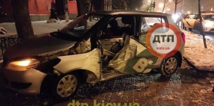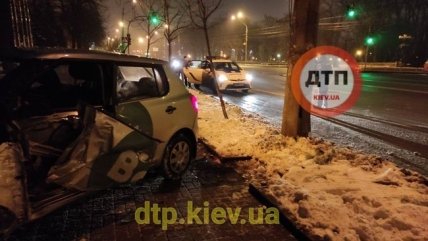 В Киеве таксист уснул за рулем и вылетел с дороги (Фото)