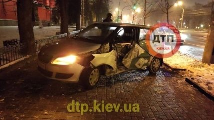 Происшествие произошло ночью возле красного корпуса Киевского национального университета имени Тараса Шевченко, по предварительным данным водитель Skoda Fabia уснул за рулем.