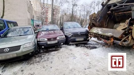 В Киеве мусоровоз разбил девять машин: эксклюзивные фото с места ЧП