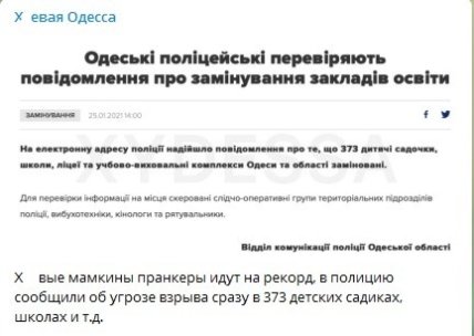 В сети даже начали шутить по этому поводу, отметив "настойчивость" минеров. Так, в Telegram-канале "Х*евая Одесса" отметили, что по всей видимости, "мамкины пранкеры идут на рекорд".