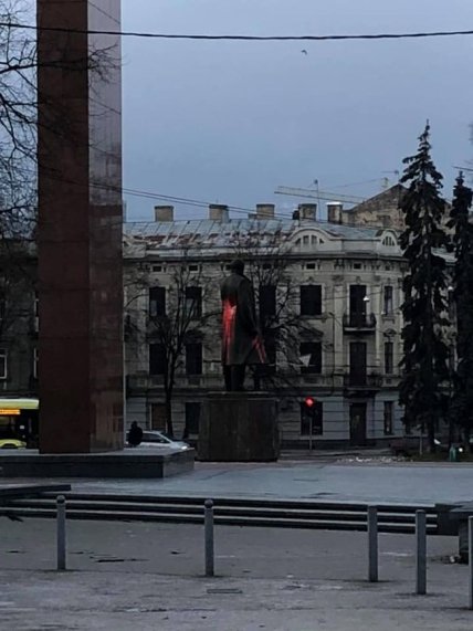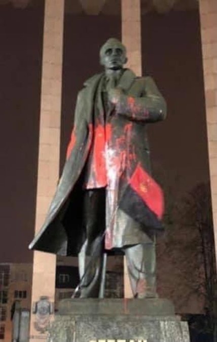 В ночь на пятницу, 5 февраля, вандалы повредили памятник Степану Бандере на площади Кропивницкого во Львове. Памятник облили красной краской.