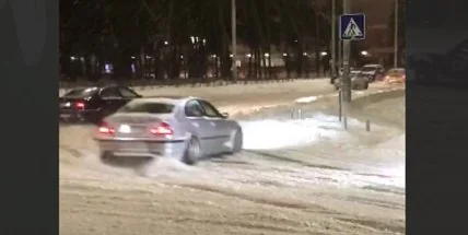 Снег и гололед не стал препоной для любителей ночных "покатушек". В Киеве устроили массовый дрифт по улицам заснеженного города.
