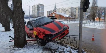 "Водила от бога", "От винта, колеса в воздух!", "В текстурах застрял. Бывает", "Мамкин гонщик переоценил себя и старое ведро", "Больше похоже на то, что занесло. Под бордюром снег и лед как трамплин", "Если юзом туда вошел, то вот так и подкинуло", - комментируют фото с места ДТП под постом.