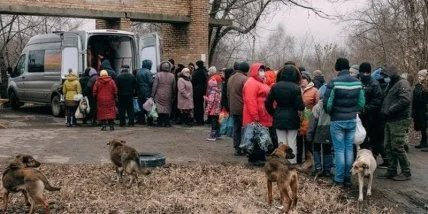 На Донбассе в оккупированных Макеевке и Донецке люди выстроились в очередь за бесплатной едой.