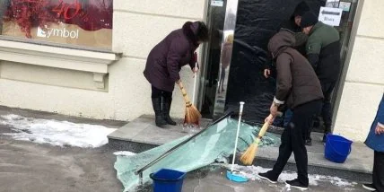 В четверг, 18 февраля в центре Харькова, на площади свободы произошло ЧП: ночью неизвестные разбили витрины магазина одежды Symbol.