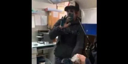 В центре Одессы мужчина зашел в супермаркет со своим товаром без чека и не смог это доказать – охранники его задержали и заставили умыться зеленкой.