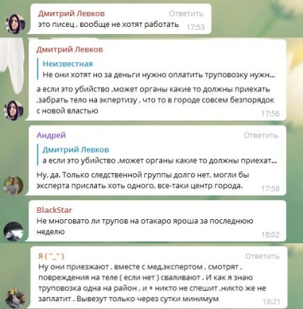 "На Отакара Яроша, 16а уже пол дня лежит труп…. Службам как всегда пофиг, так как никто денег не дал. Вокруг ходят дети, собаки обнюхивают", - сказано в сообщении.