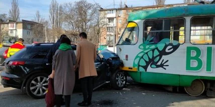 В Одессе элитное авто не пропустило трамвай, есть пострадавшая (фото)