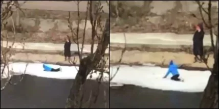 Ребенок играл на льдине, пока мама болтала по телефону: видео разгневало сеть
